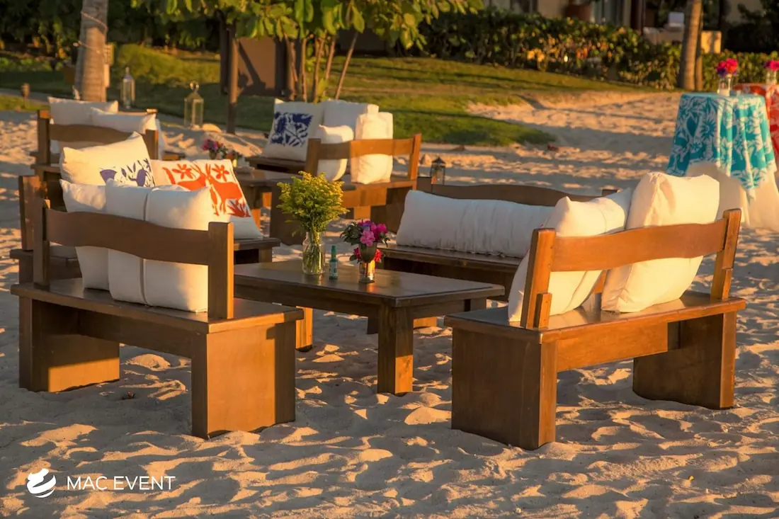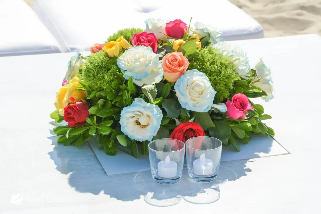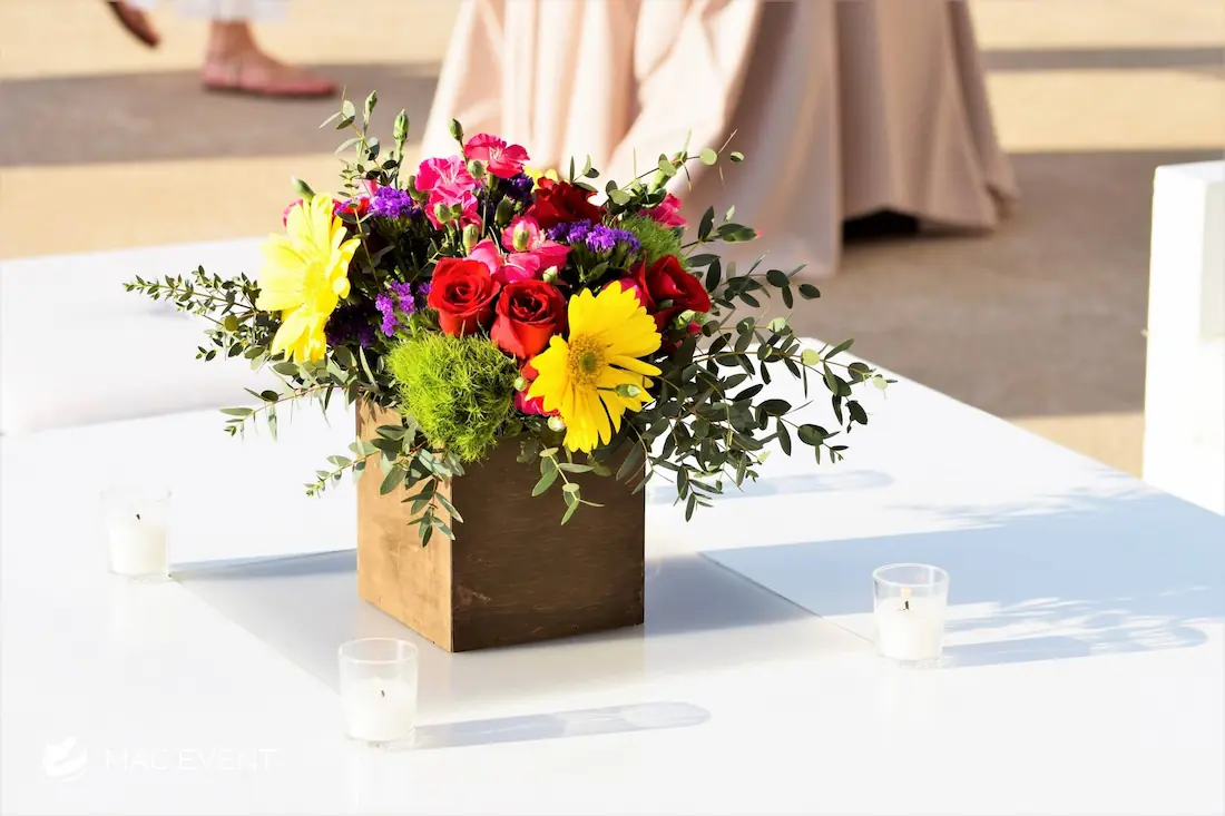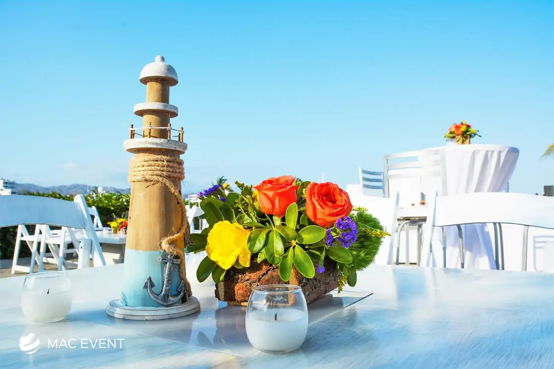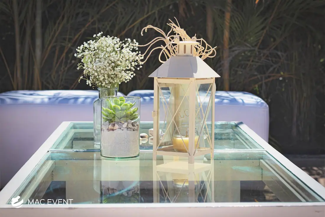 Enhance your lounge areas with our coffee table centerpieces, perfect for weddings and events in Rosarito. These stylish centerpieces add a touch of elegance and sophistication to your coffee tables.