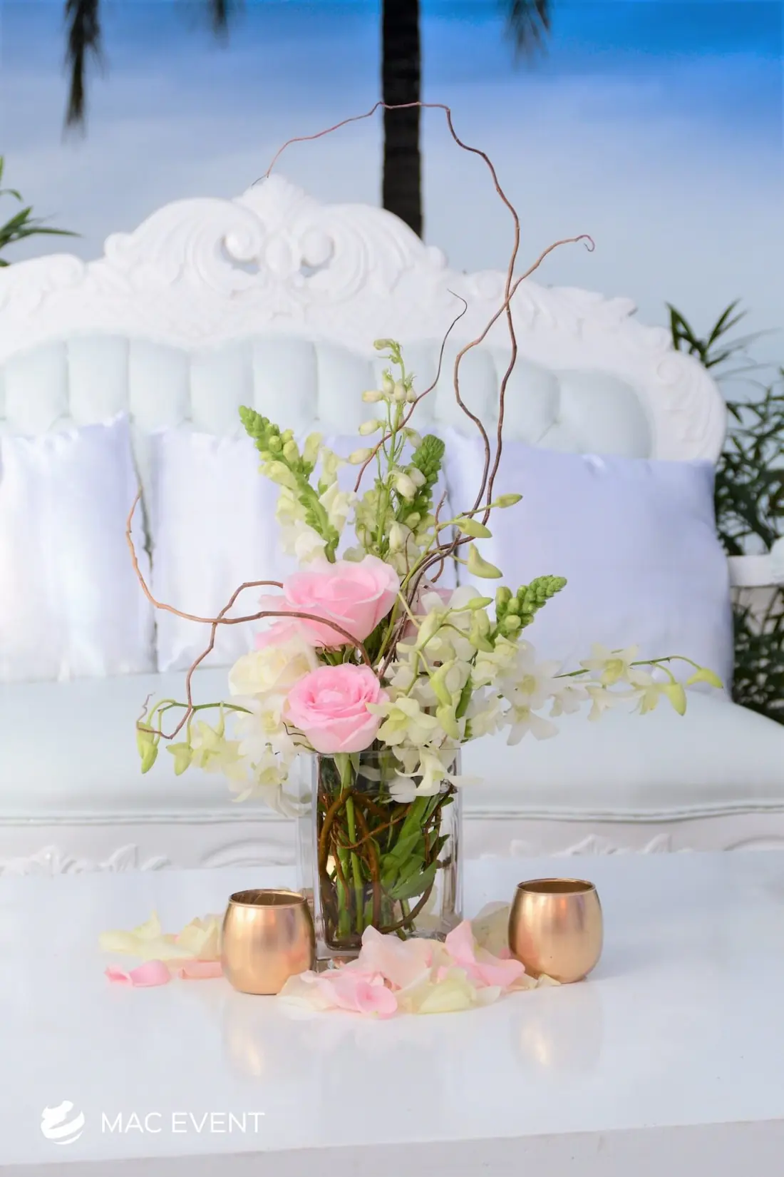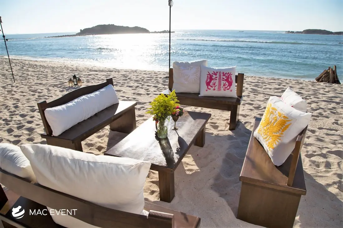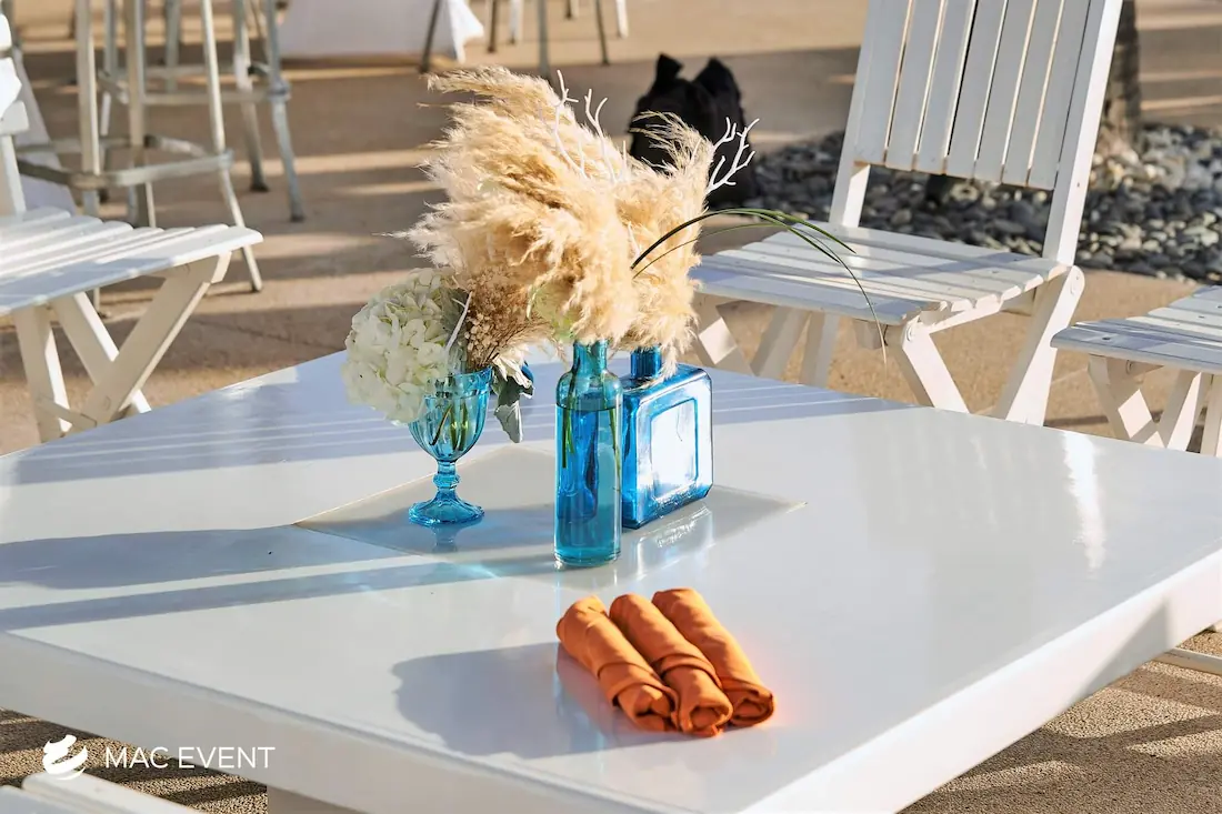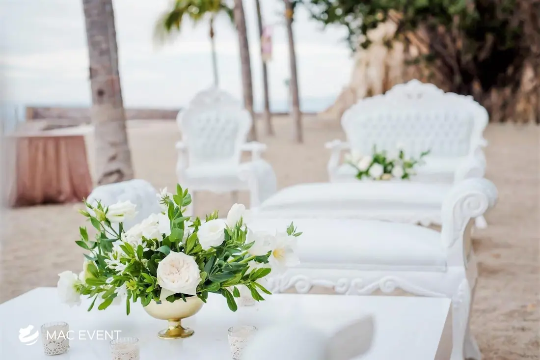 Enhance your lounge areas with our coffee table centerpieces, perfect for weddings and events in Rosarito. These stylish centerpieces add a touch of elegance and sophistication to your coffee tables.
