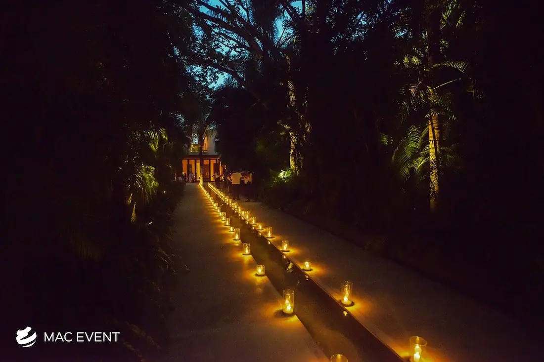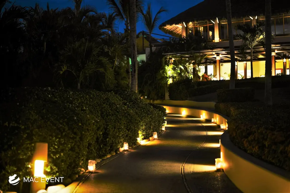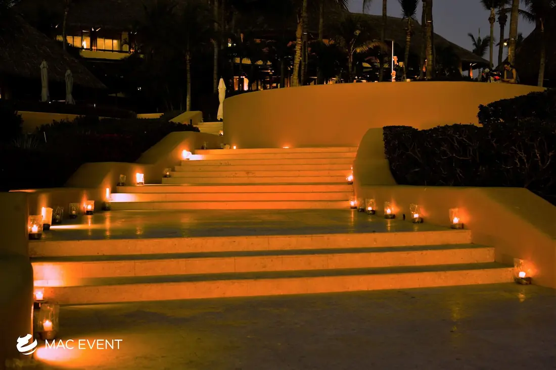 Create a stunning entrance with our beautifully decorated pathways, perfect for weddings and events in Rosarito. These pathways enhance your decor and guide your guests in style.