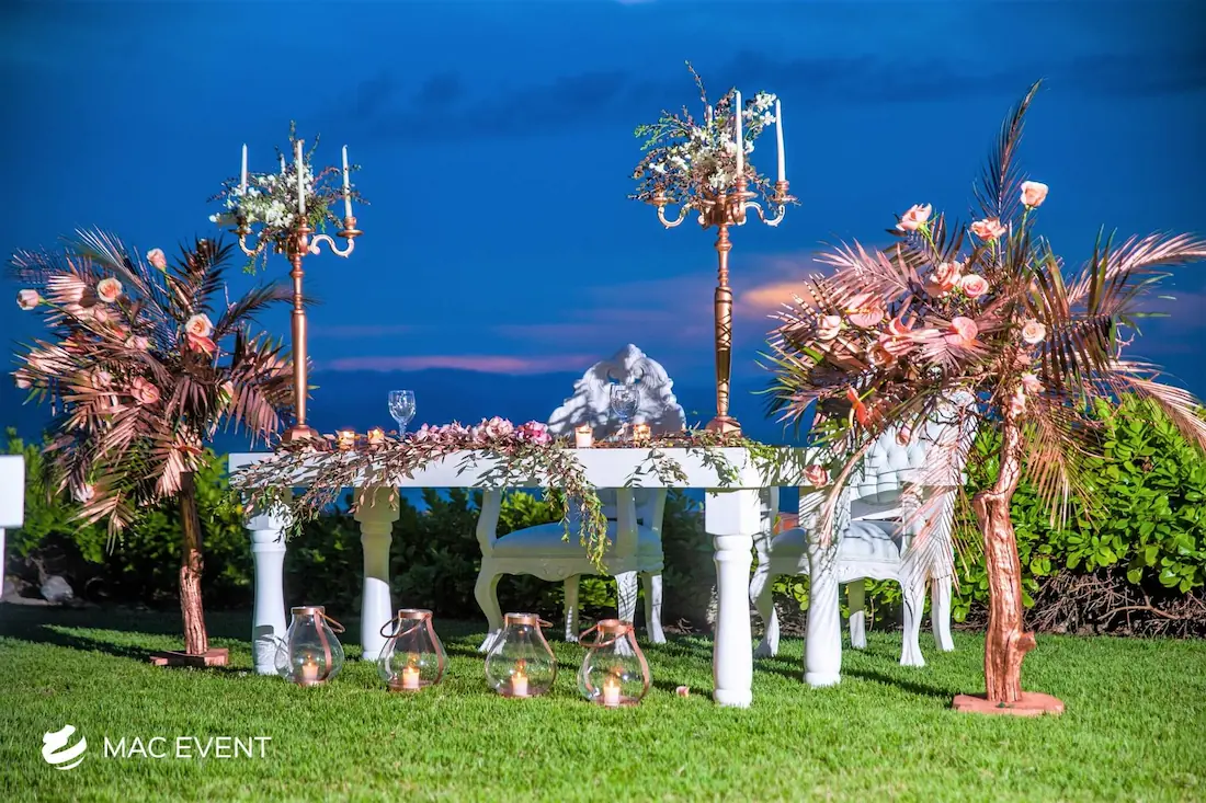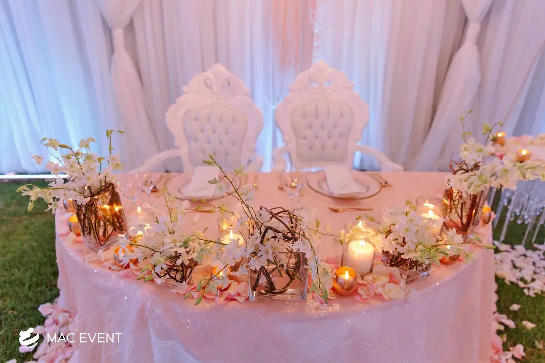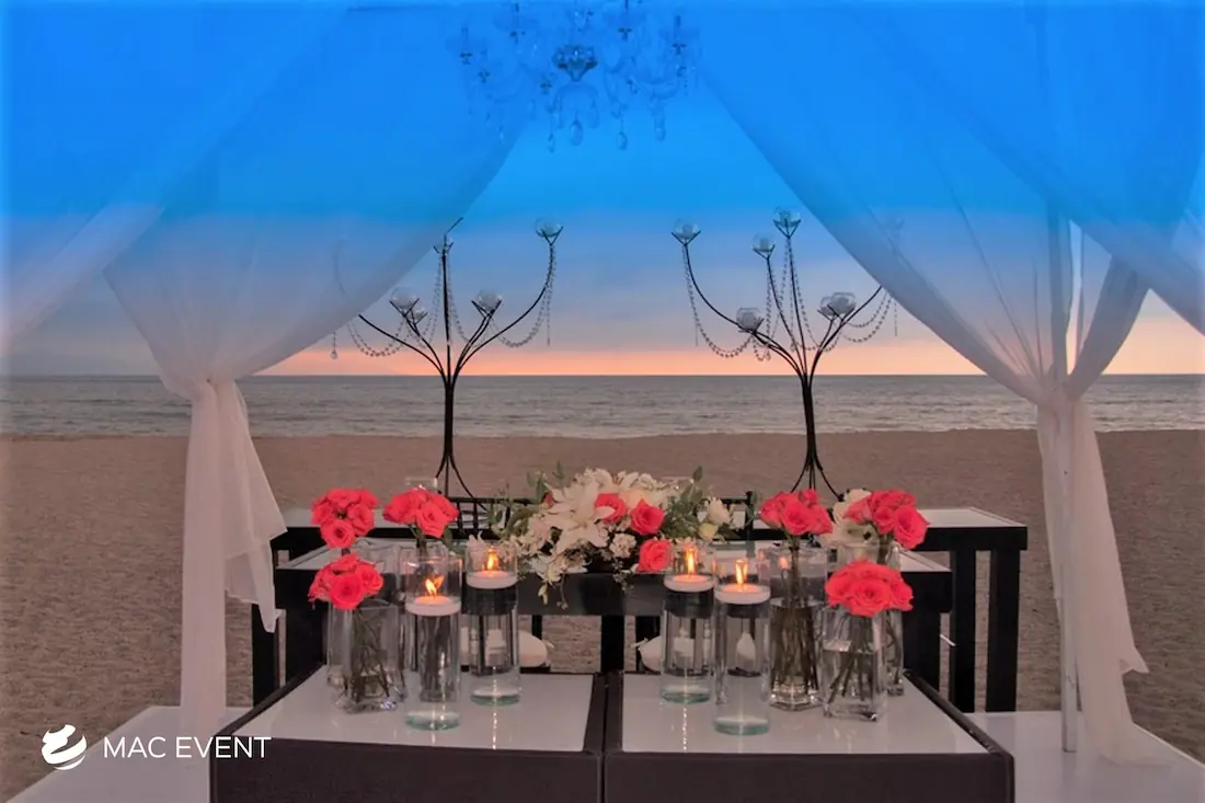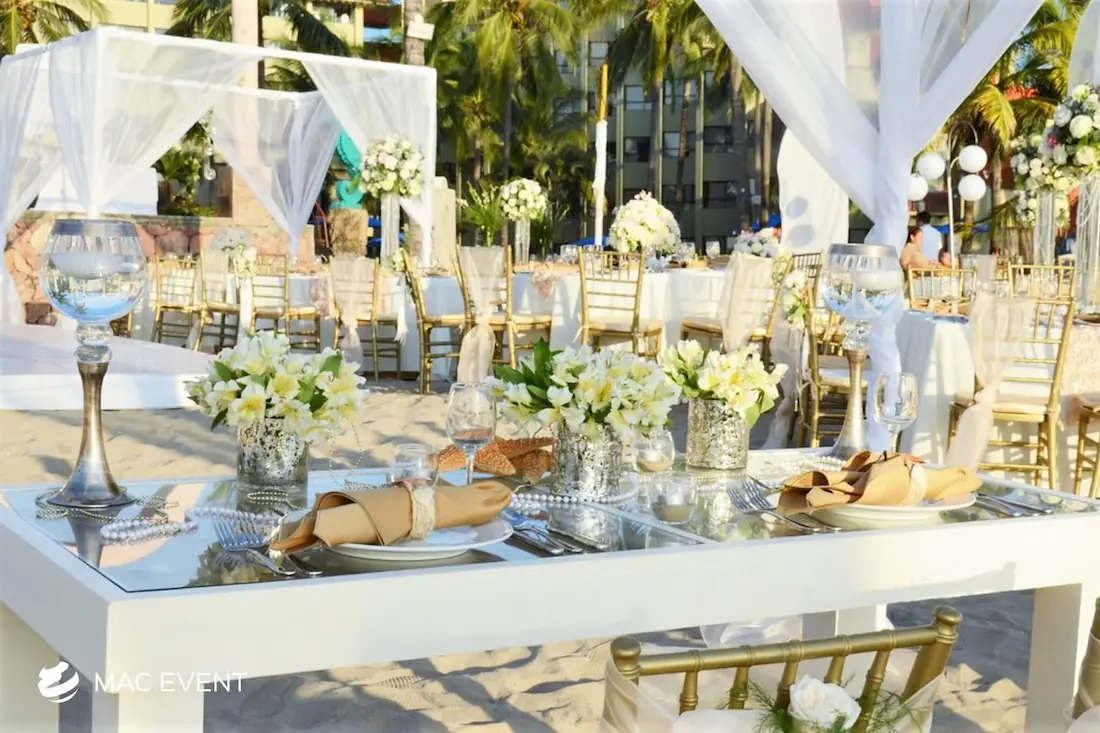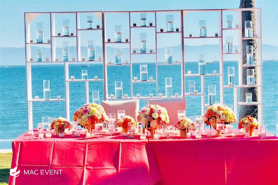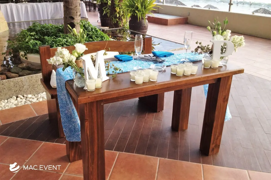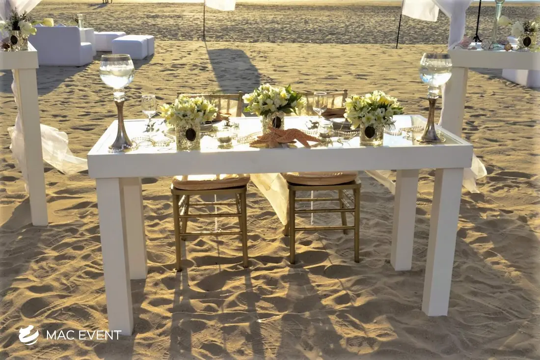 Create a beautiful and intimate setting with our sweetheart tables, perfect for weddings in Rosarito. These elegantly decorated tables provide a stunning focal point for the bride and groom.