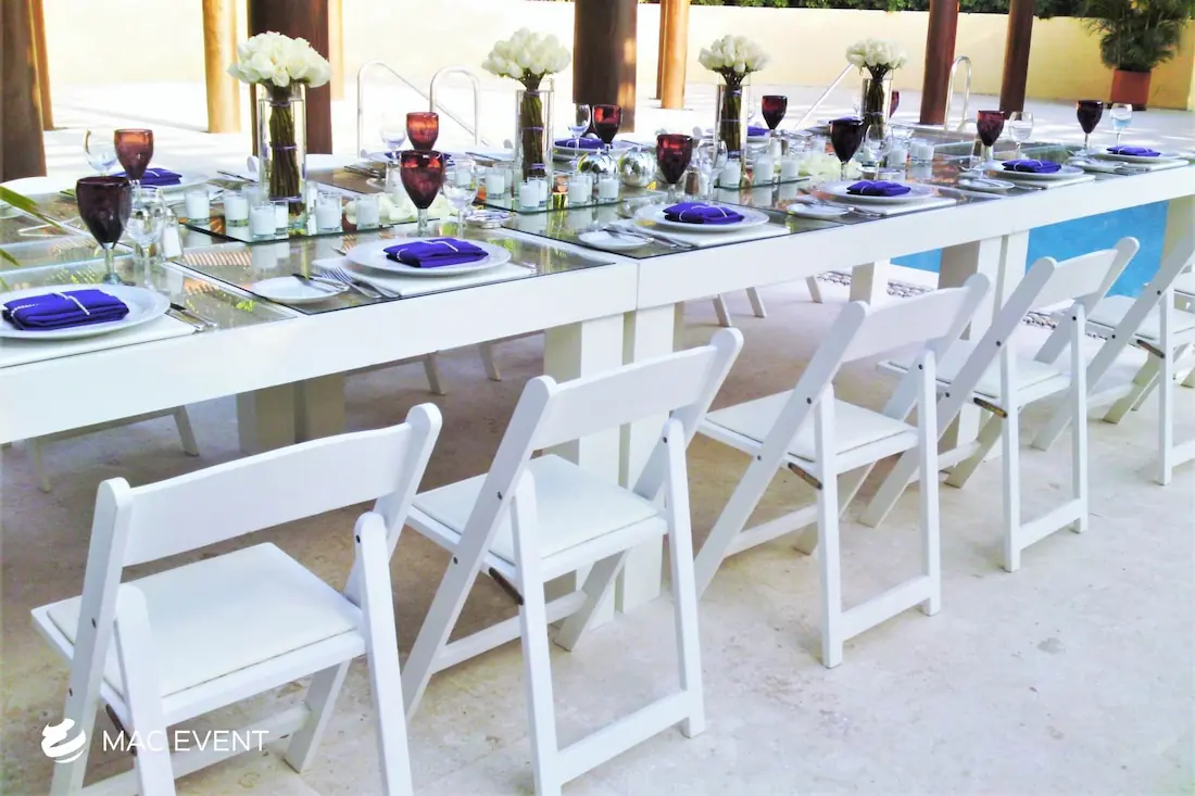 Make a statement with our Avant Garde chairs, designed for modern and stylish weddings and events in Rosarito. These unique chairs add a contemporary flair and are perfect for creating a chic, sophisticated atmosphere.