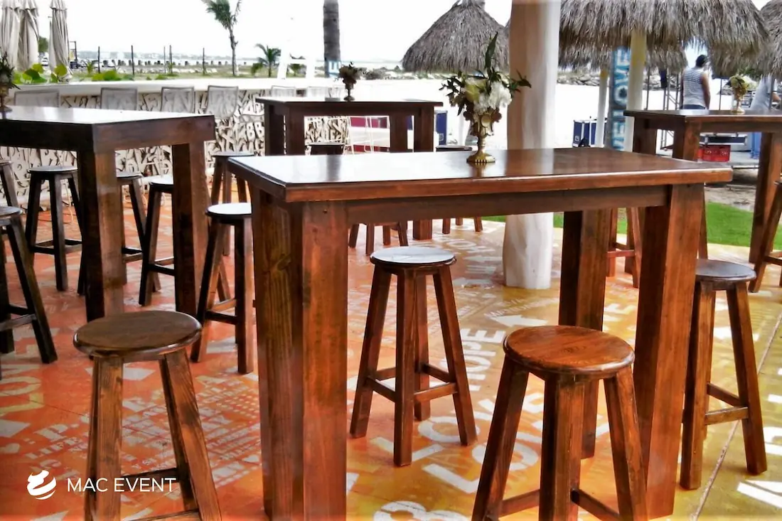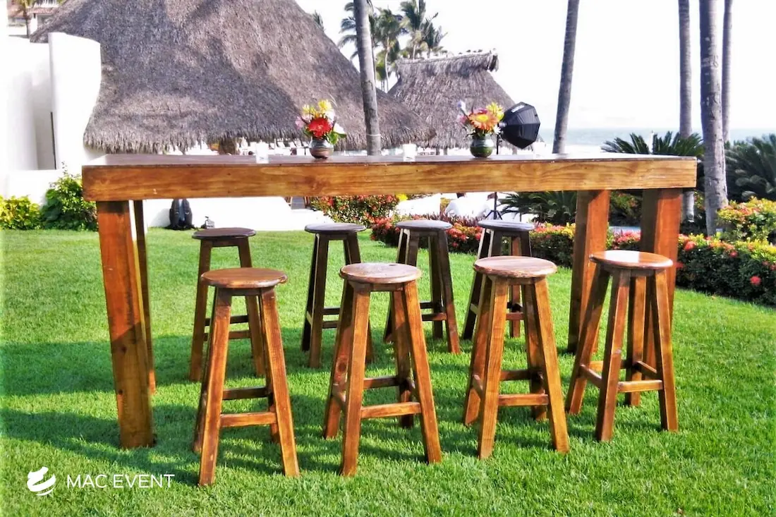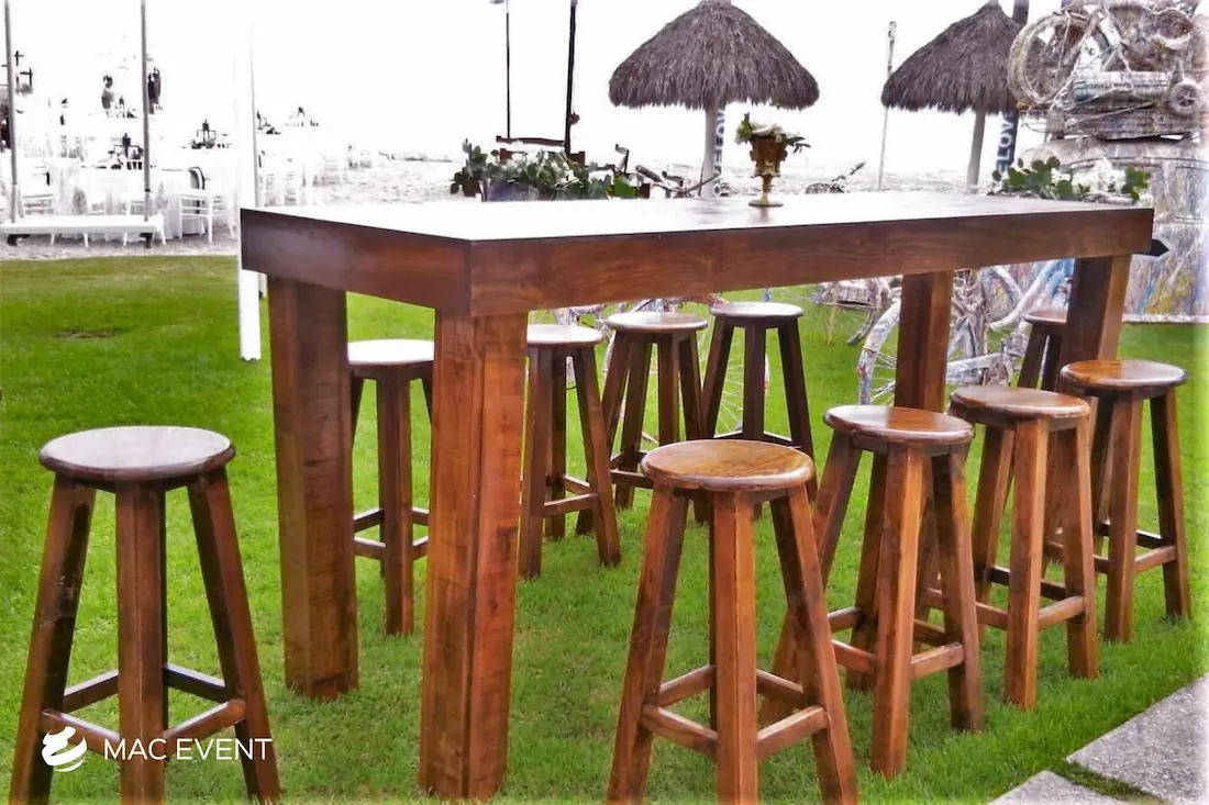 Enhance your rustic-themed event with our rustic bar stools, ideal for weddings and events in Rosarito. These stools provide a charming and comfortable seating option that blends seamlessly with rustic decor.