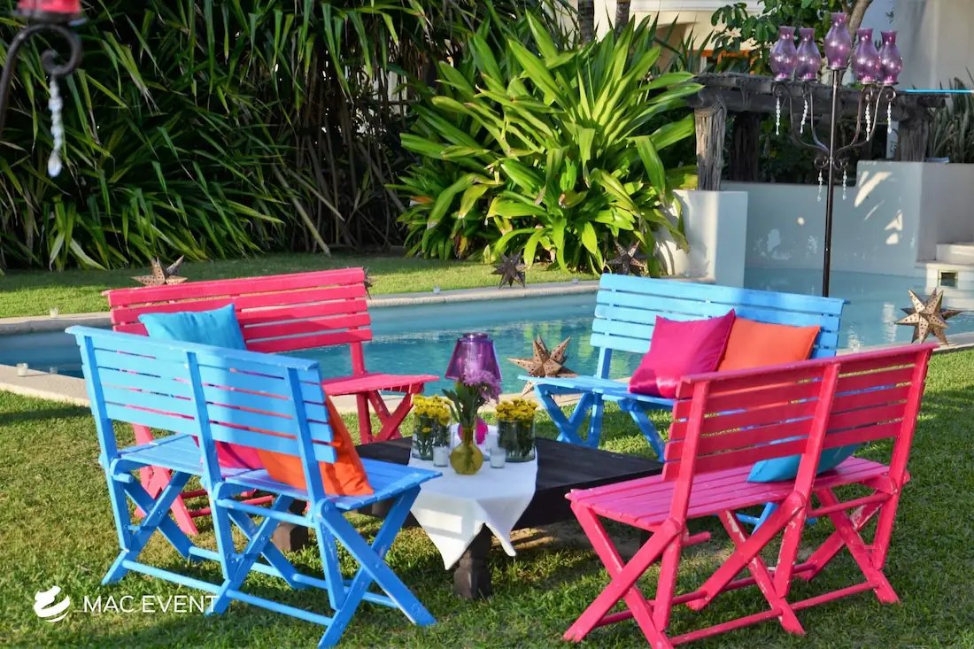 Celebrate local culture with our Mexican lounges, perfect for weddings and events in Rosarito. These colorful and beautifully crafted lounges add an authentic and festive touch to your seating arrangements.