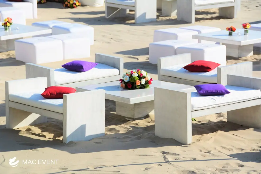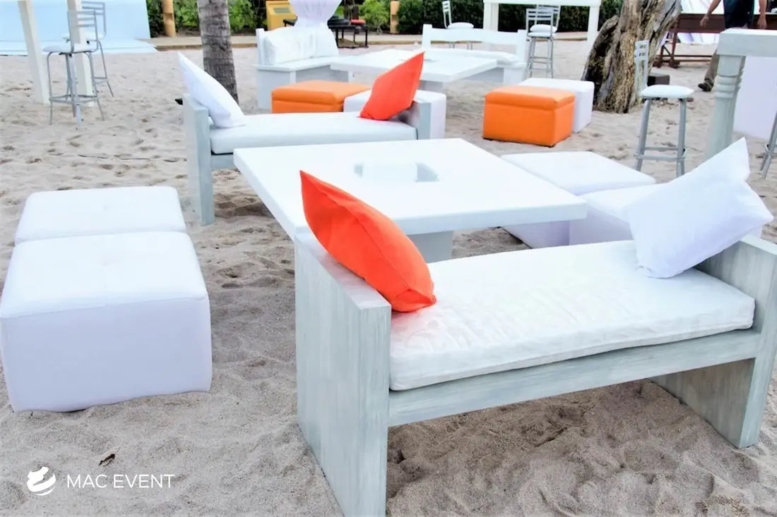 Our modern lounges are perfect for creating a chic and contemporary atmosphere at weddings and events in Rosarito. Featuring sleek designs and comfortable seating, these lounges add a stylish touch to your event.