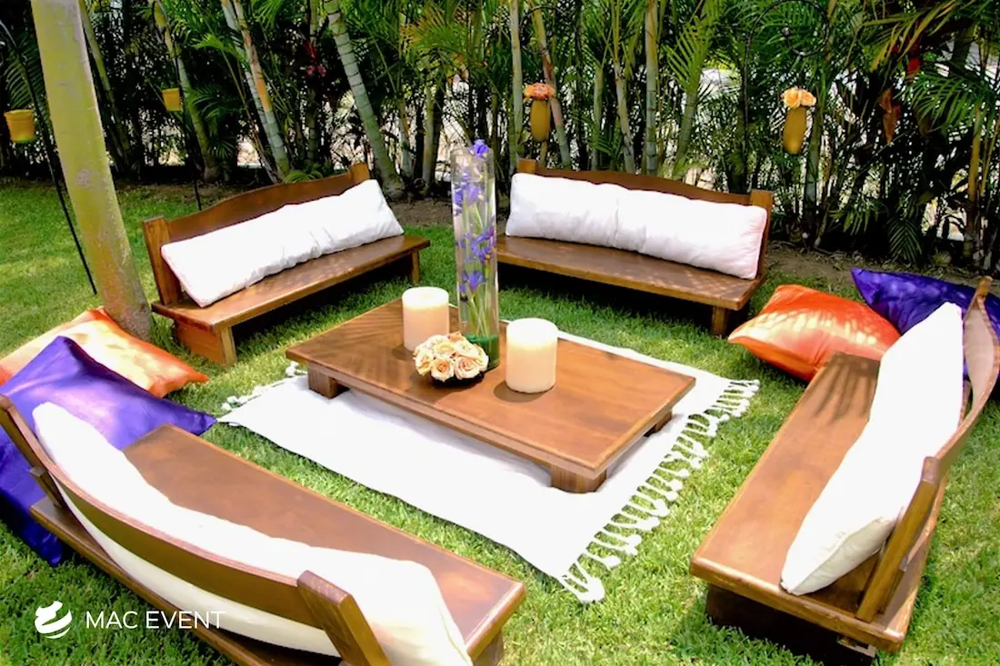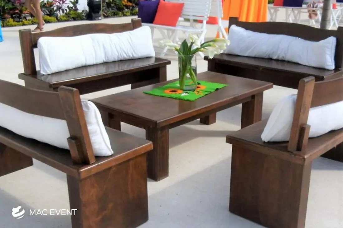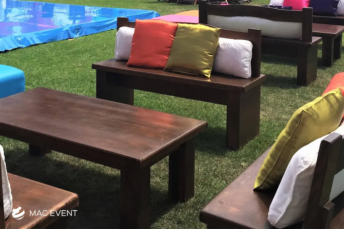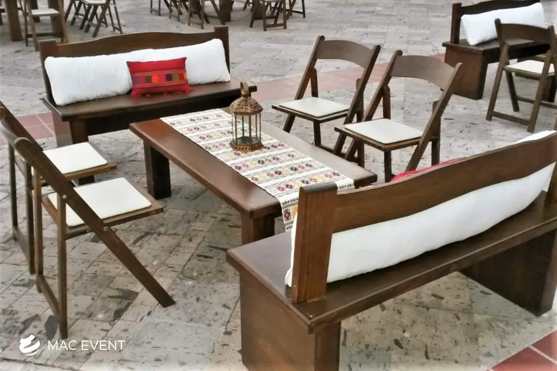 Enhance your rustic-themed event with our rustic lounges, ideal for weddings and events in Rosarito. These lounges offer a charming and comfortable seating solution, perfect for creating a warm and inviting atmosphere.