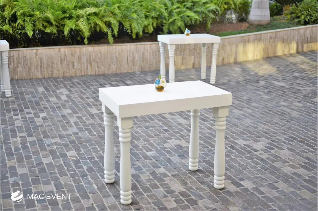 Our turned leg cocktail tables add a touch of classic elegance to weddings and events in Rosarito. Featuring beautifully crafted legs, these tables provide a stylish and functional addition to your bar areas.
