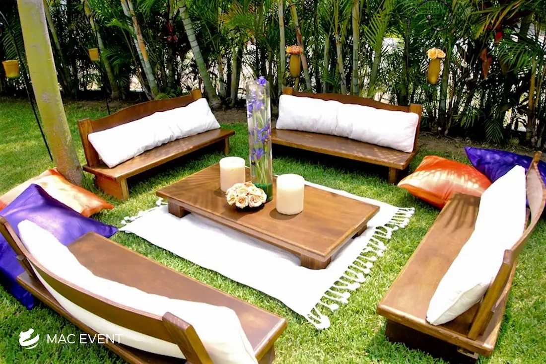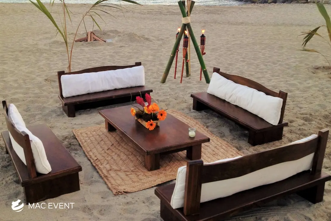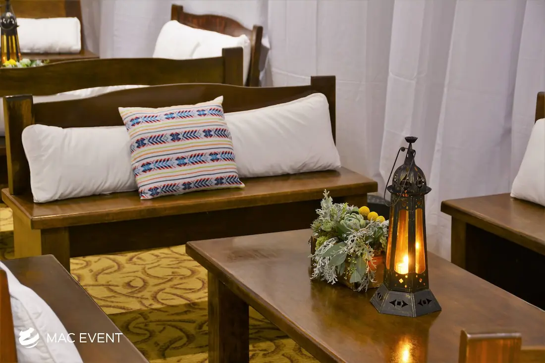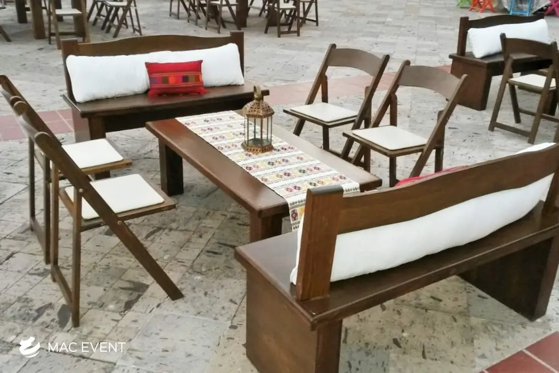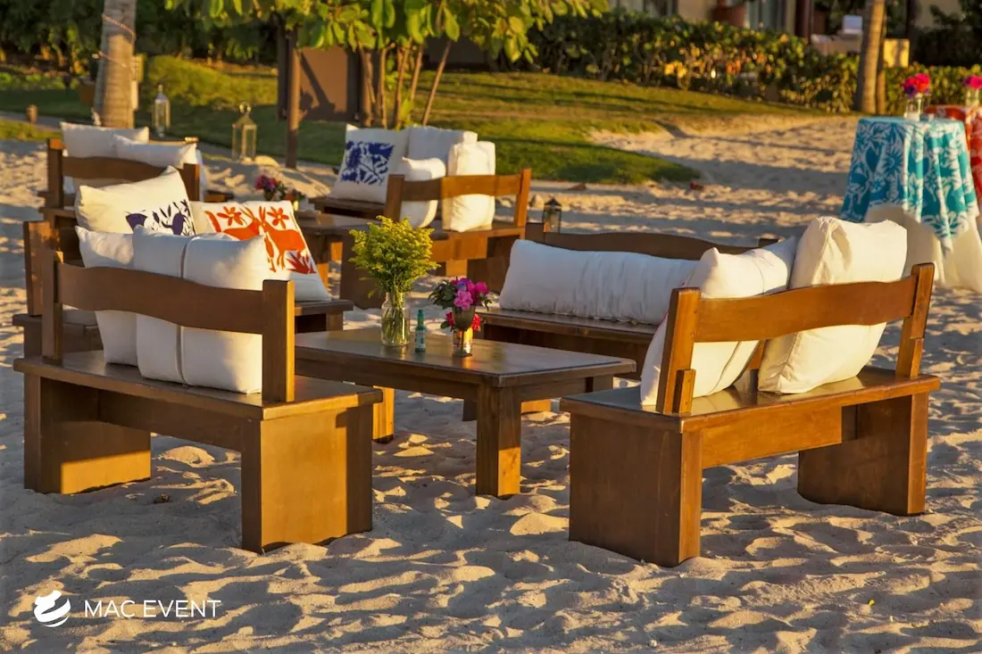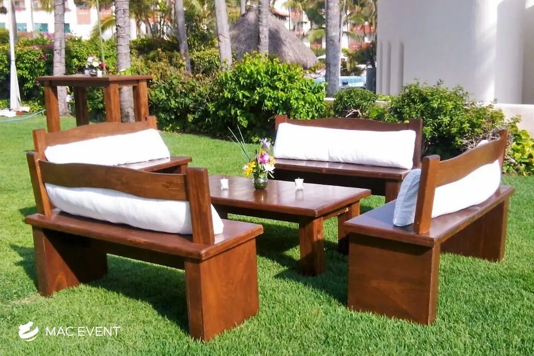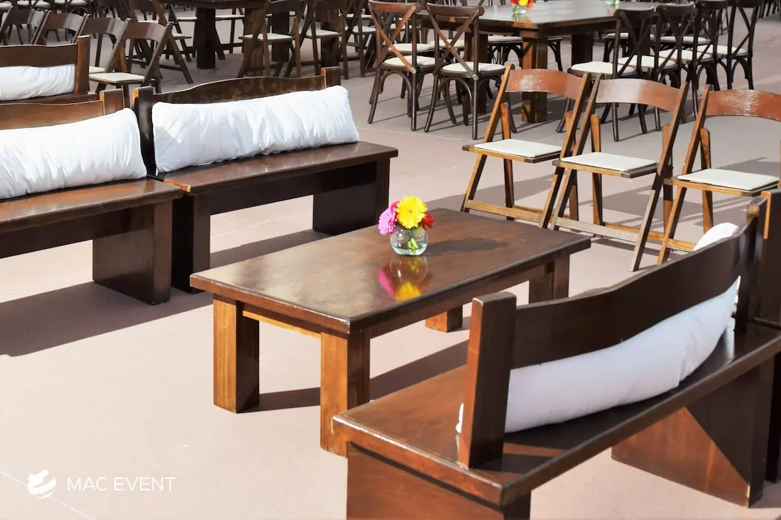 Enhance your rustic-themed event with our rustic coffee tables, ideal for weddings and events in Rosarito. These tables provide a charming and functional addition to your lounge areas, perfect for relaxed seating.