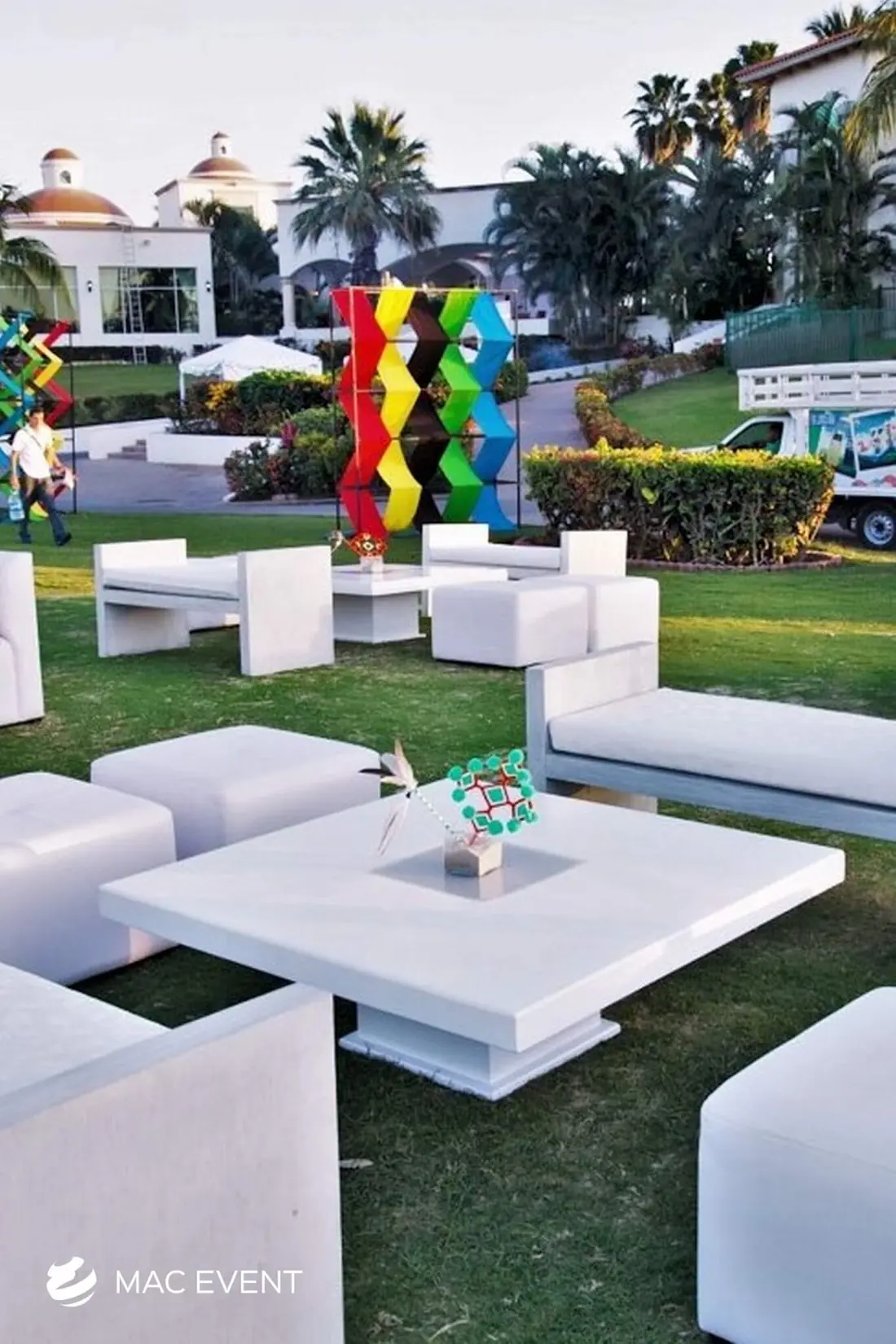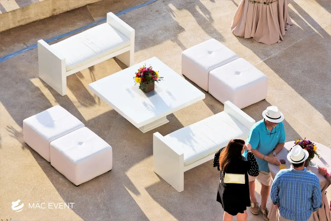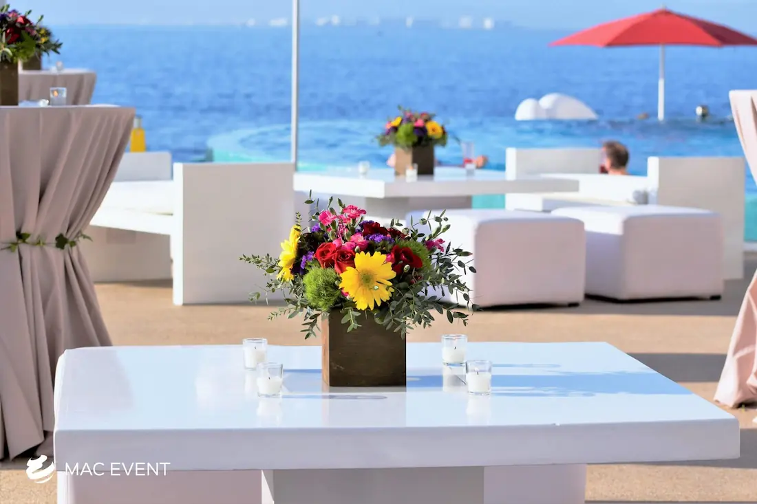 Combine modern and rustic elements with our wooden acrylic coffee tables, ideal for weddings and events in Rosarito. These tables feature a unique blend of materials, creating a stylish and versatile look.