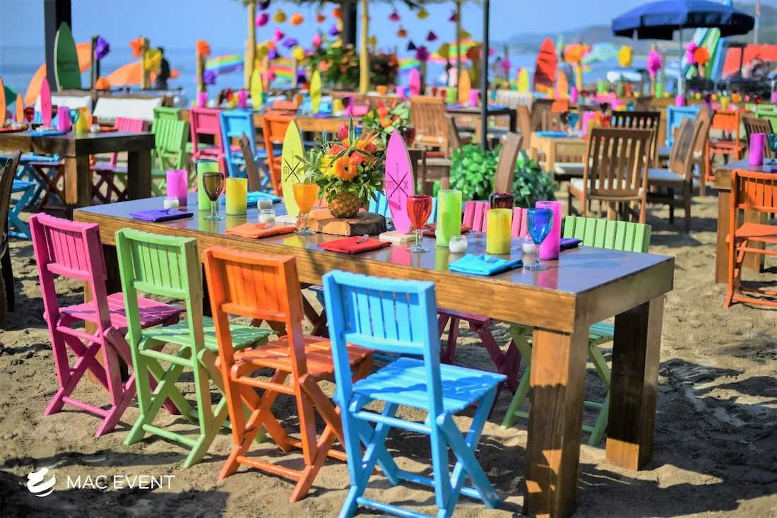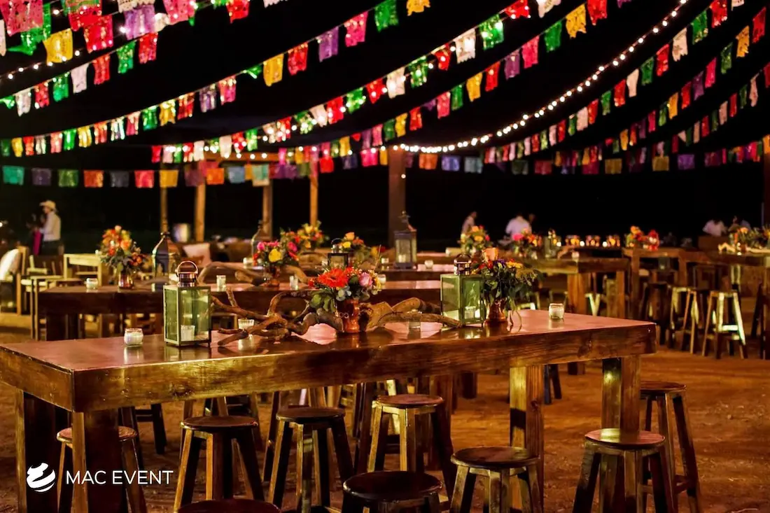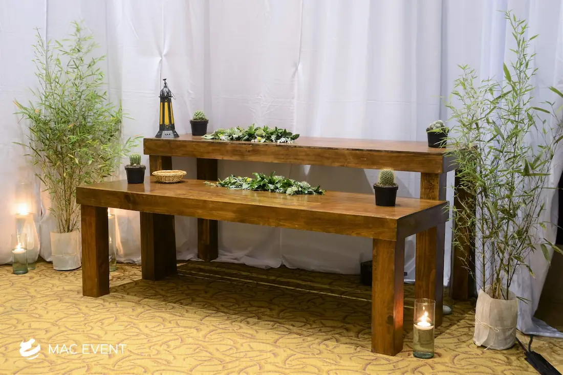 Enhance your rustic-themed event with our rustic long tables, ideal for weddings and events in Rosarito. These tables provide a charming and spacious seating solution, perfect for creating a warm and inviting atmosphere.