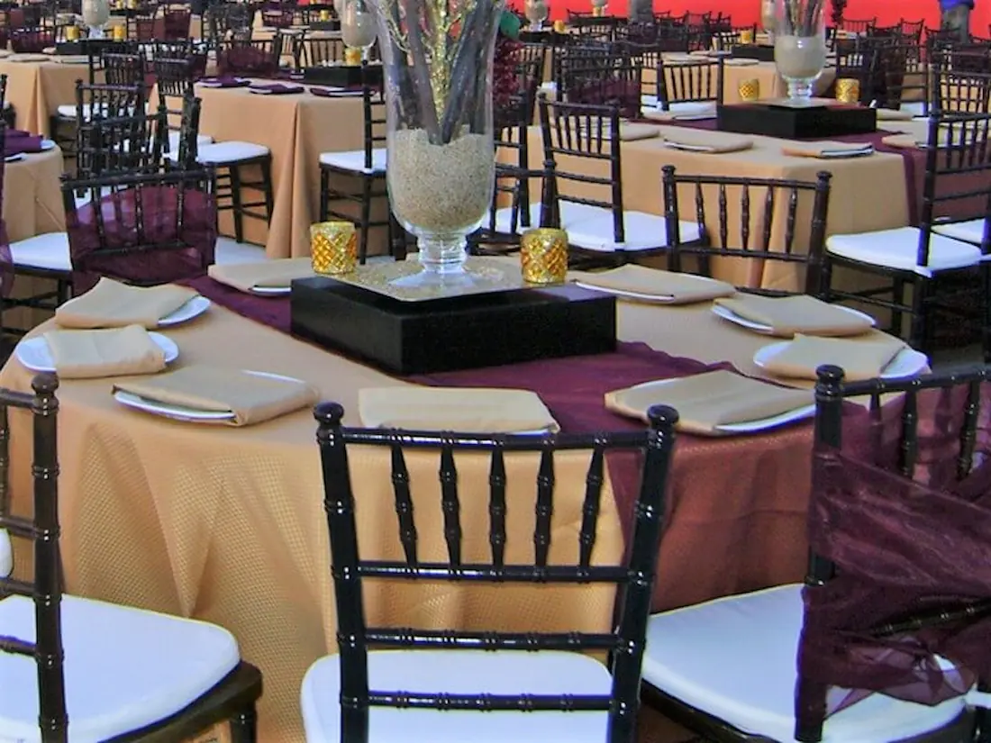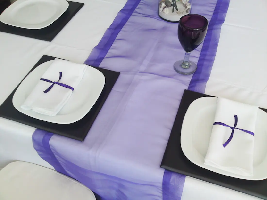 Add a touch of elegance with our organza table runners, ideal for weddings and events in Rosarito. These sheer and delicate runners enhance your table settings and create a sophisticated look.
