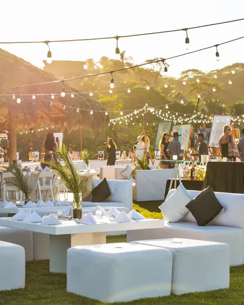 Our textured table runners add depth and interest to your table settings, perfect for weddings and events in Rosarito. Available in various designs, these runners create a unique and stylish look for your tables.