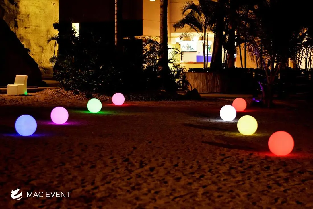 Add a touch of modern elegance with our orb lights, perfect for weddings and events in Rosarito. These stylish lights create a unique and memorable visual impact, enhancing your decor.